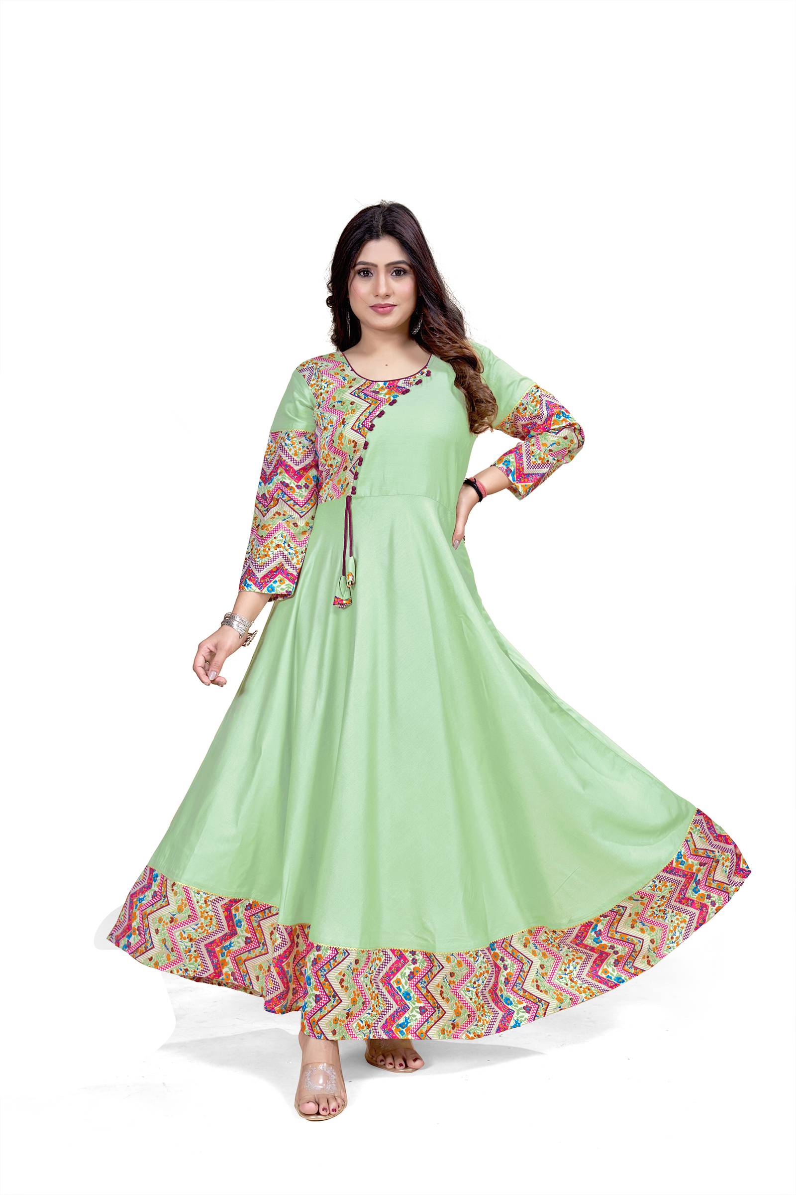 Embroidered Viscose Rayon Stitched Anarkali Gown (Green)