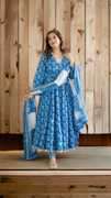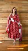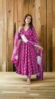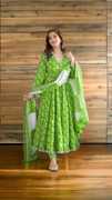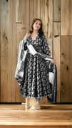 This set's kurta has the traditional Anarkali silhouette, which is renowned for its graceful drape and flowing lines. This style gives the ensemble a sense of traditional charm while fitting a variety of body shapes. Anarkali kurtas are a great addition to any wardrobe because they are adaptable and can be worn for a variety of informal events. Furthermore, this outfit stands out thanks to its colourful and vibrant print, which can be dressed up or down for casual get-togethers or daytime excursions.