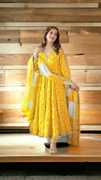 The kurta's long sleeves provide an appropriate amount of flair and functionality. These sleeves are suitable for casual use since they offer sufficient coverage without obstructing movement. The full-sleeve design gives the classic Anarkali style a contemporary twist, making sure you stay comfortable and look great all day.