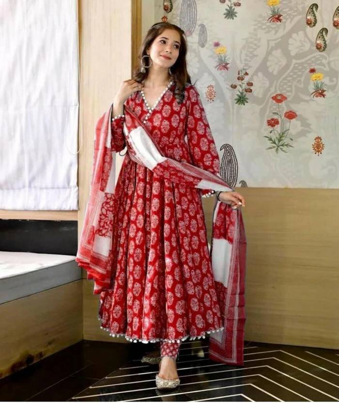 Meetara Creation Polka Print Anarkali Kurta, Bottom & Dupatta Set