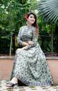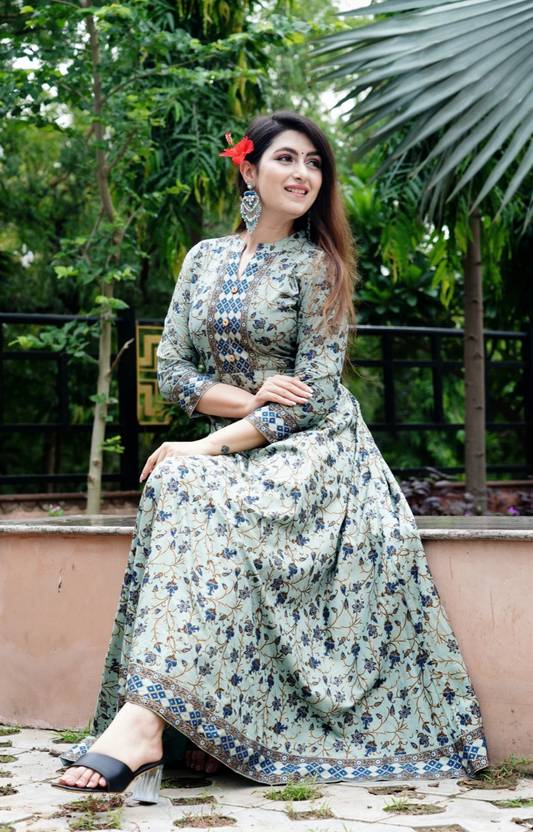 Meetara Creation Women Printed Anarkali Kurta (Light Green, Blue)