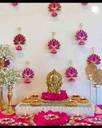 MeeTo Lotus Flower Diya Holder For Diwali Decorations , Home , Puja,Table Diya Decorative Showpiece - 12 cm (Wood, Brass, Gold, Pink)