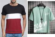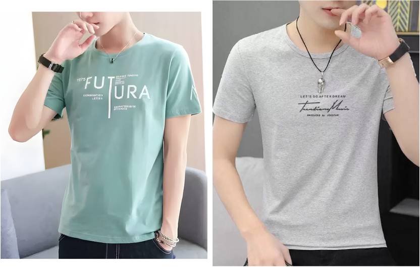 Meetri Printed Men Round Neck Light Green, Grey T-Shirt