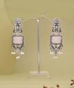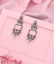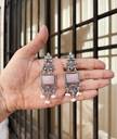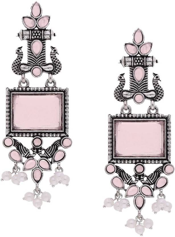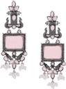 Pink Dangle Earrings, Silver Square Centre, Oxidized Earrings for Women