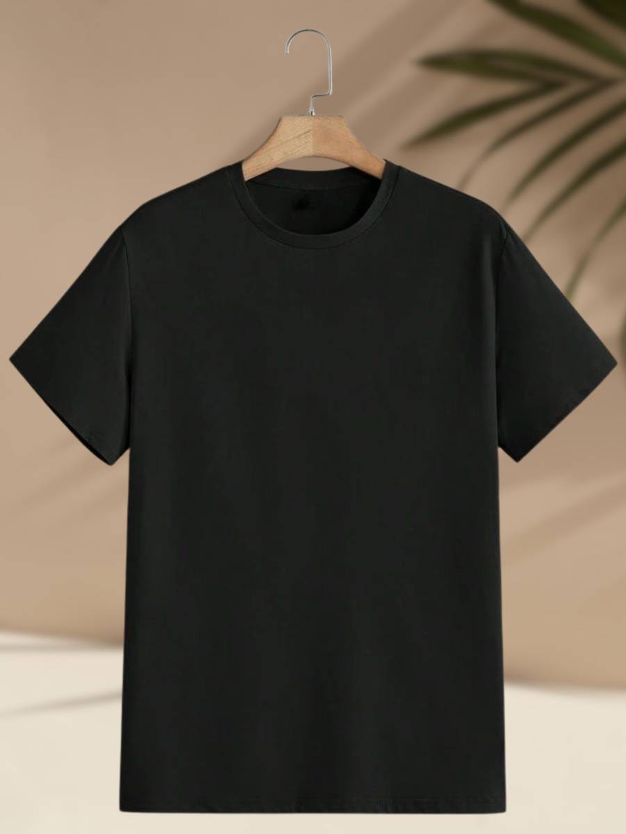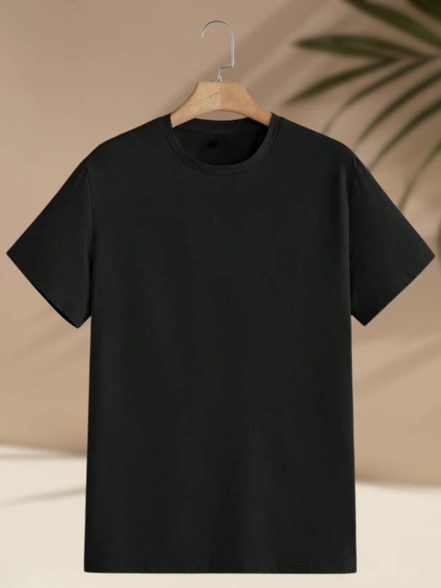 Men Solid Round Neck Cotton Blend Black T-Shirt