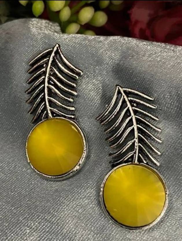 Oxidised Jewellery earrings leaf shape With Different Coloured