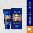Meglow Men Fairness Cream- Meglow men's fairness cream provides all round fairness by reducing melanin content of skin, dark spots, providing even tone to skin & reduces the impact of Sun. It energizes the facial skin & give a fresh look by removing dull & dead skin cells, provides oil & sweat control. It helps to keeps you younger by reducing fine lines & wrinkles caused due to sun exposure, pollution & dust. This cream has the richness of its smooth textured cream enriched with the goodness of Aloe Vera, Cucumber, Vitamins C, E, B3 & B5 that continuously manage the lost radiance, revitalize the skin from within & unveil a bright, light & evenly.
