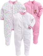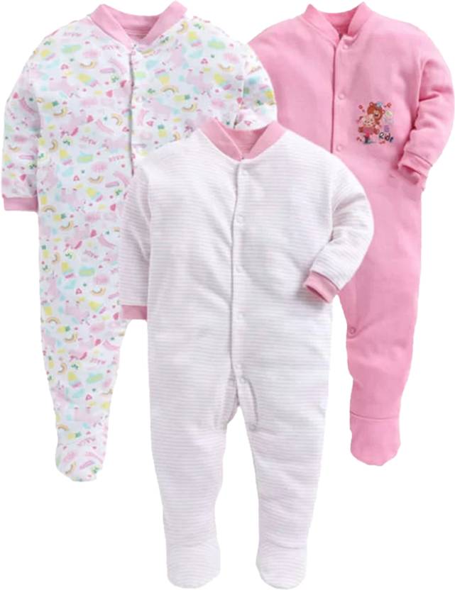 MEGNAM Romper For Baby Boys & Baby Girls Printed Cotton Blend (Pink, Pack of 3)