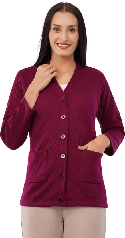MEHAR Self Design V Neck Casual Women Purple Sweater