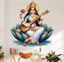 MEHMETDECOR 55 cm Saraswati Maa Wall Stickers & Murals Size - 55x58cm Self Adhesive Sticker (Pack of 1)
