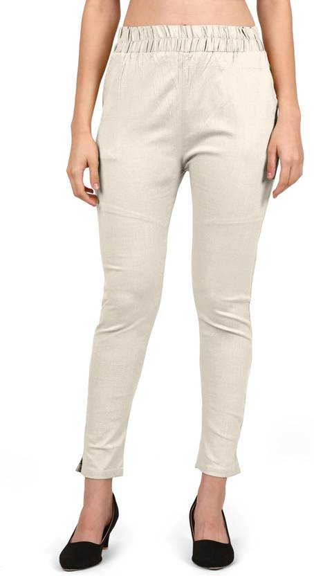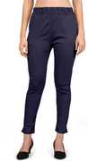 Elevate your wardrobe with these sophisticated navy cigarette pants that combine style with comfort. The elastic waistband ensures a perfect fit while maintaining a sleek silhouette. These ankle-length trousers feature a tailored cut that flatters the figure, making them ideal for both office wear and casual outings. The versatile design pairs beautifully with formal blouses or casual tops, while the premium fabric offers excellent drape and movement. The cropped length works wonderfully with various footwear choices, from elegant heels to casual flats. These pants are a wardrobe essential that transitions seamlessly from day to evening wear, offering both sophistication and comfort in equal measure.