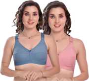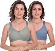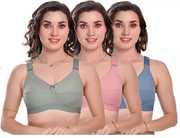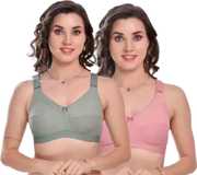 Meile Women Cotton Lightly Non padded Wire Free Seamless Bra Women Full Coverage Non Padded Bra (Green, Pink)