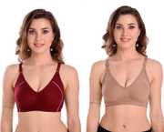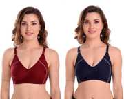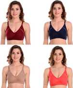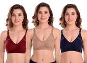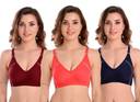 Meile Women Full Coverage Non Padded Bra (Orange, Maroon, Blue)