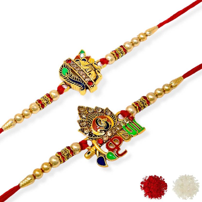 Lord Krishna Devotional Combo Rakhi Pack of 2 with Roli Chawal n Rakshabandhan Greeting Card For Brother n Kids