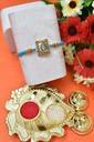 Specially designed handcrafted traditional designer rakhi Includes Rakhi, Roli Chawal and Free Greeting card.