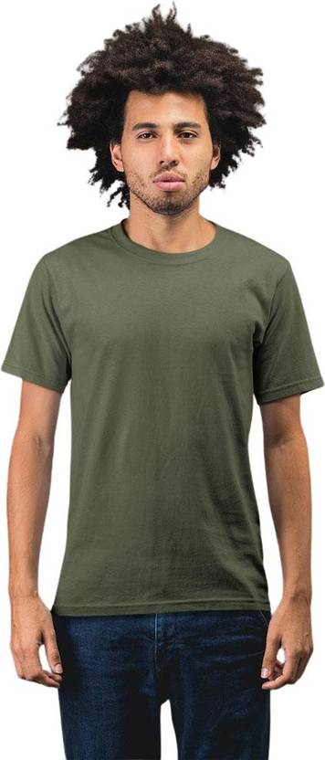 Men Solid Round Neck Pure Cotton Green T-Shirt