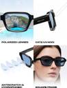 Designed in Barcelona: Thoughtfully designed eyewear inspired by contemporary urban style, balancing everyday comfort with long-lasting durability.::UV400 Polarised Lenses: German TAC polarised lenses with UV400 Category 2 protection help reduce glare and protect eyes from harmful sun rays.::Advanced Lens Coatings: Features anti-scratch and superhydrophobic coatings to resist smudges, water, and everyday wear.::Sustainable Material & Fit: Made using bio-based G850 material with a square frame shape, finished in a black frame with blue lenses for a versatile, modern look.