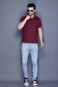 MELLOWMEN Polka Print, Printed Men Polo Neck Black, Maroon T-Shirt