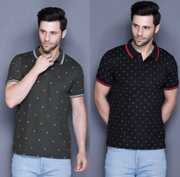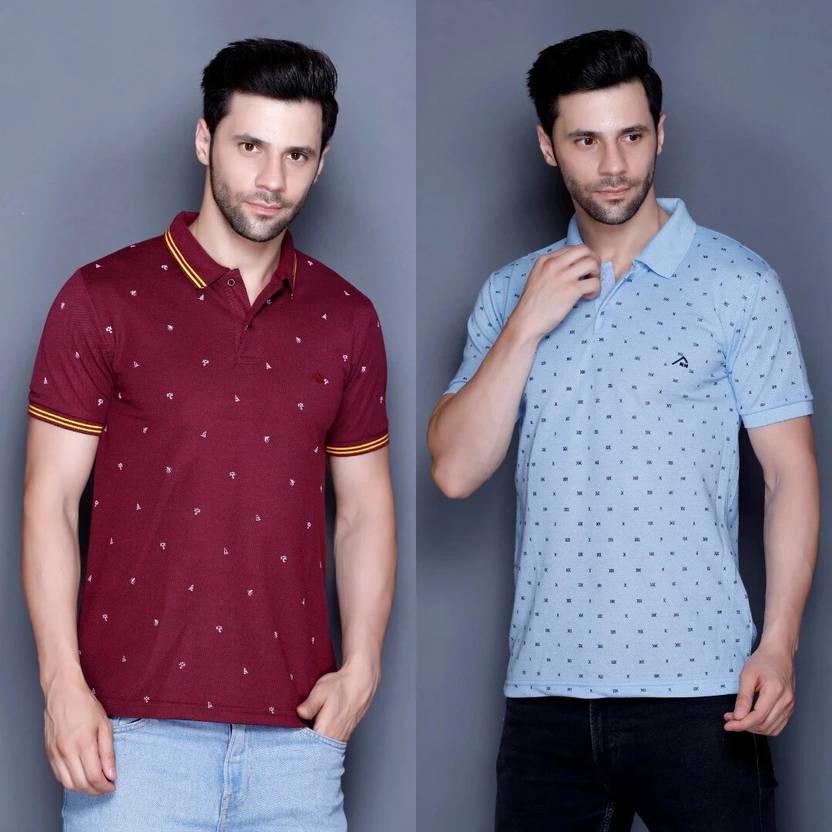 MELLOWMEN Polka Print, Printed Men Polo Neck Maroon, Blue T-Shirt