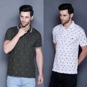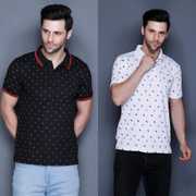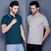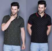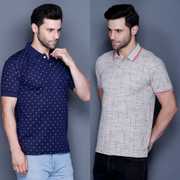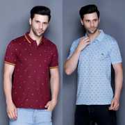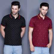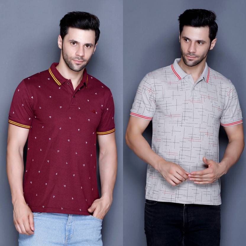 MELLOWMEN Polka Print, Printed Men Polo Neck Maroon, Grey T-Shirt