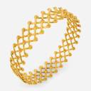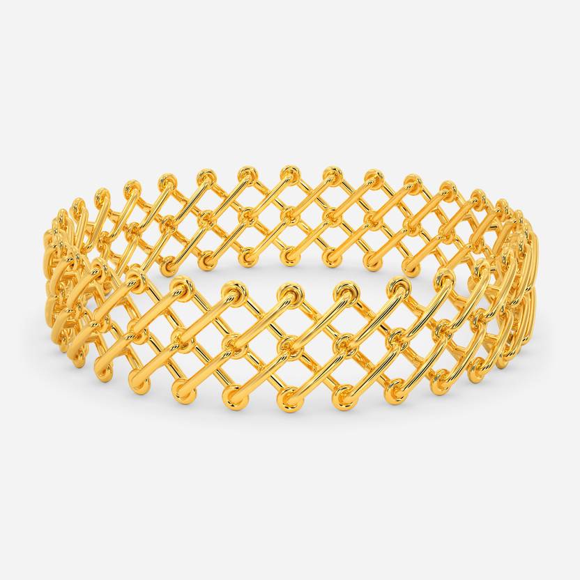 Laced Together Gold Bangle - High polish yellow gold bangle inspired by criss-cross motif in a rhombus shaped pattern connected to each other at the tips.