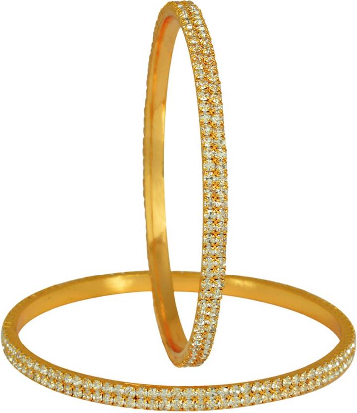 Gold plated double liner Swiss CZ studded Diamond kada look rich look Bangle set for Women