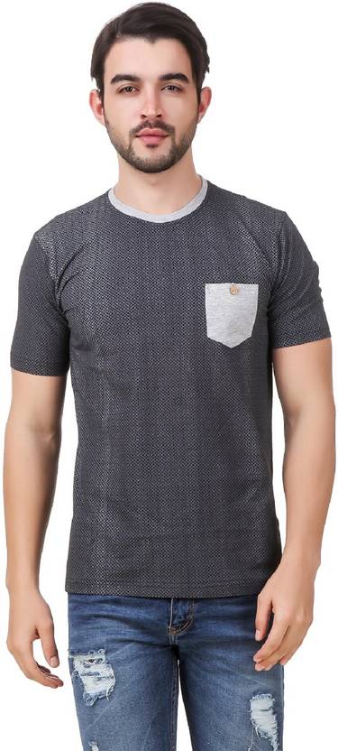 Men Printed Round Neck Cotton Blend Grey T-Shirt