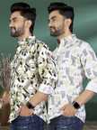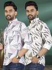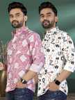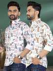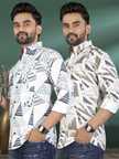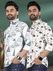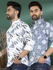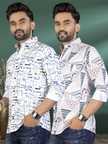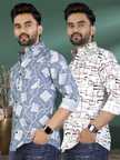 Men Printed Casual Blue, White Shirt (Pack of 2)