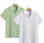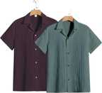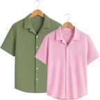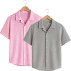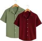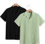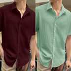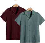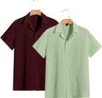 Men Self Design Casual Light Green, Light Blue Shirt (Pack of 2)