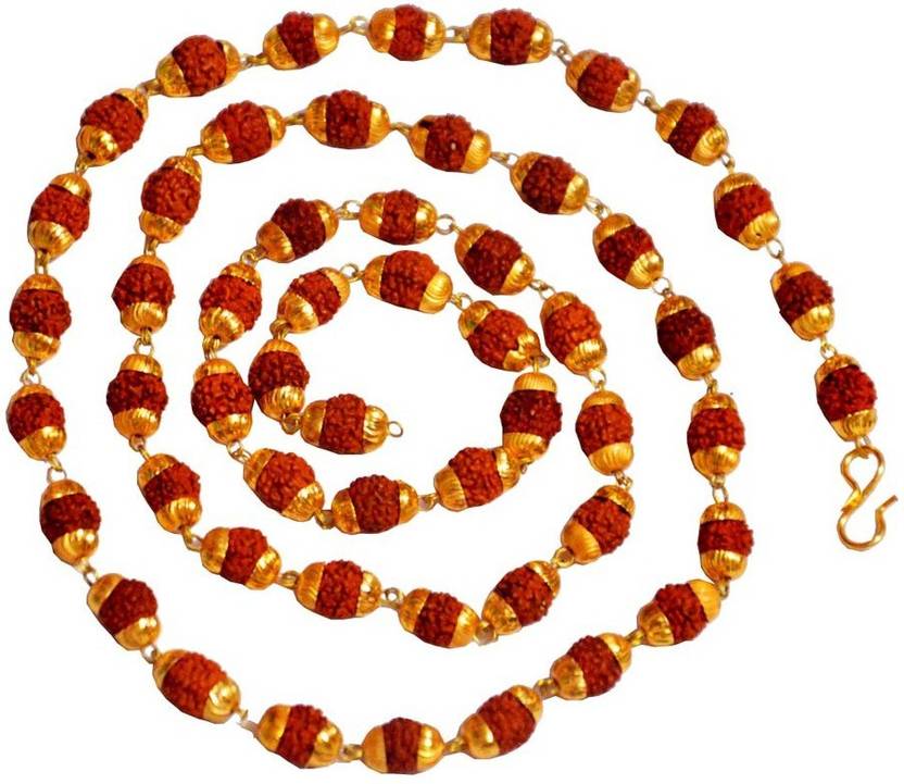Original Rudraksha mala with gold capping. Cap is made of brass and polished with a very fine polish. Lasts longer and is skin friendly.
