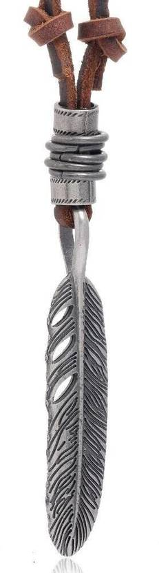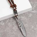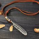 Vintage Alloy Feather Pendant with Adjustable Pure Leather Cord Necklace for Men