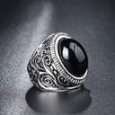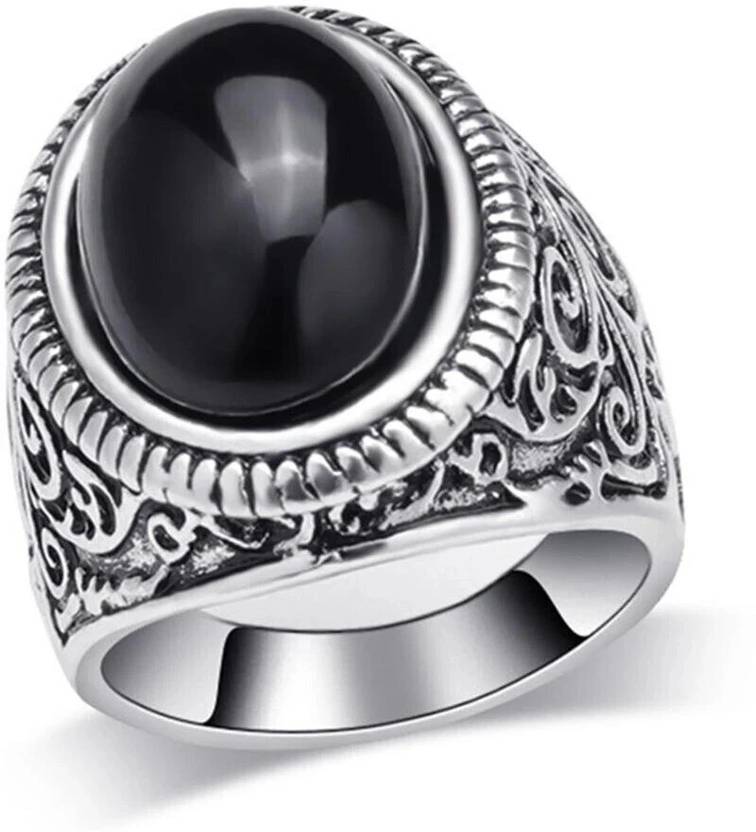 Vintage Black Stone Luxury Solid Pure Titanium Stainless Steel Ring for Men