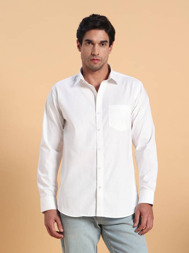 mendrobe Men Solid Casual White Shirt