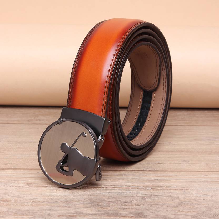 Men's Artificial Leather Auto Lock Buckle Belt for Men (MFG5112) (Tan)