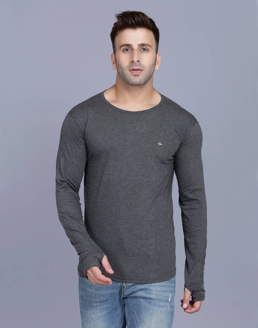 Menkovy Solid Men Round Neck Grey T-Shirt