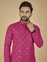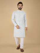 Features a structured Mandarin collar and a hidden button placket for a clean, seamless look. Subtle tonal embroidery on the chest adds a touch of luxury without being over-the-top