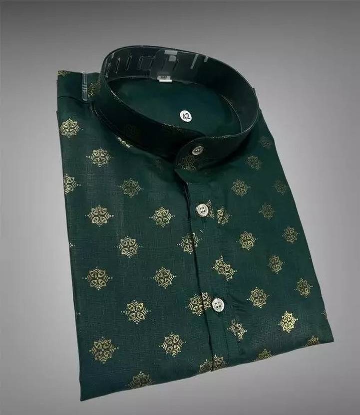 MENTIFIC Men Printed Straight Kurta (Dark Green)