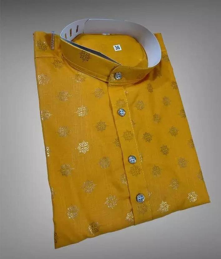 MENTIFIC Men Printed Straight Kurta (Yellow, Gold)