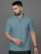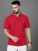 MENTIFIC Solid Men Mandarin Collar Pink T-Shirt