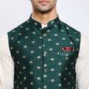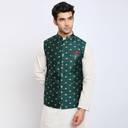 This gorgeous green Nehru jacket is the perfect attire for all your needs. The green colour is an eye-catching and vibrant shade that will look amazing with any other clothing. It's made of Jacquard.