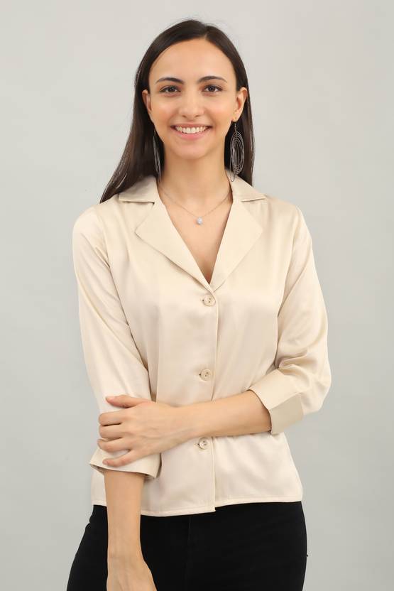 MEOREX Casual Solid Women Beige Top