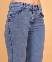 Thanks to the solid pattern, these women’s jeans offer a clean and classic appearance that aligns well with a variety of fashion preferences. The minimalistic design allows easy pairing with printed or textured tops, making these jeans a practical option. With no added motifs or embellishments, these jeans maintain a polished look.
