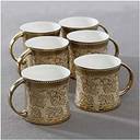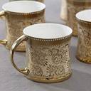 merdwal Cups Tea Set of 6 Diamond Luxury Golden Coffee Cups Bone China 160 ml (Gold) Bone China Coffee Mug (160 ml, Pack of 6)