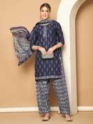 Beautiful Suit look pretty like never before.Wearing this Beige Color Suit which made from with Navy Blue Colored Printed Cotton Bottom and Beige And Navy Blue Colored Cotton Dupatta.Suit has also decorative work like Printed.This beautiful suit features a classy Printed Work all over,which makes it a smart pick for all occasions. You can wear this Suit in different styles. You can wear it occasionally or casually.