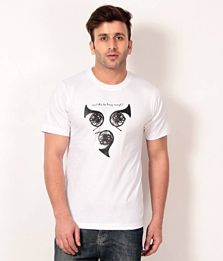 Men Printed Round Neck Cotton Blend White T-Shirt