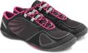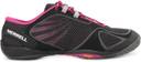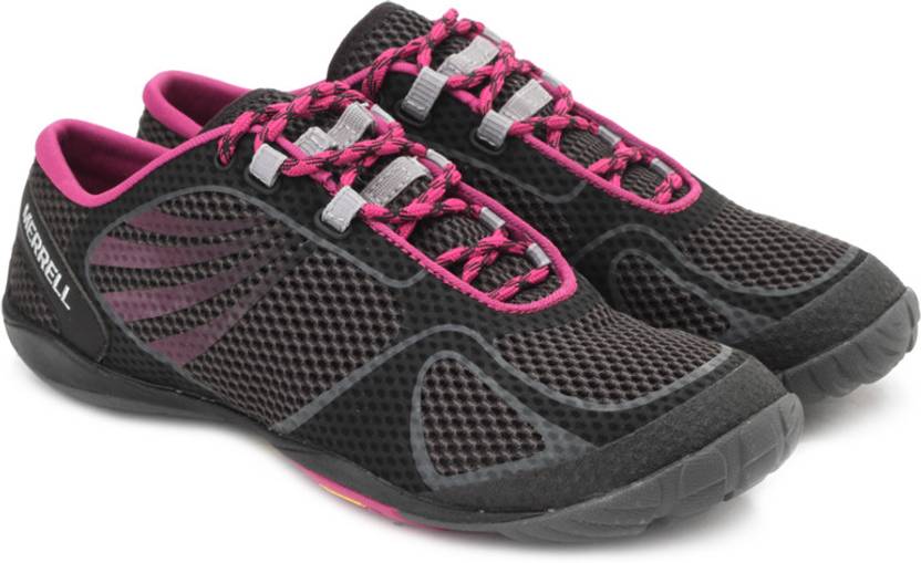 Feel the exhilaration of the run with this pair of black Pace Glove running shoes from Merrell. With a usage of the most comfortable materials like - synthetic leather, fabric and rubber - you can be guaranteed never ending comfort. Team it with black track pants and a baby pink coloured polo neck t-shirt.