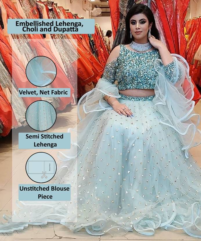 Mert India Embellished Semi Stitched Lehenga Choli (Light Blue)