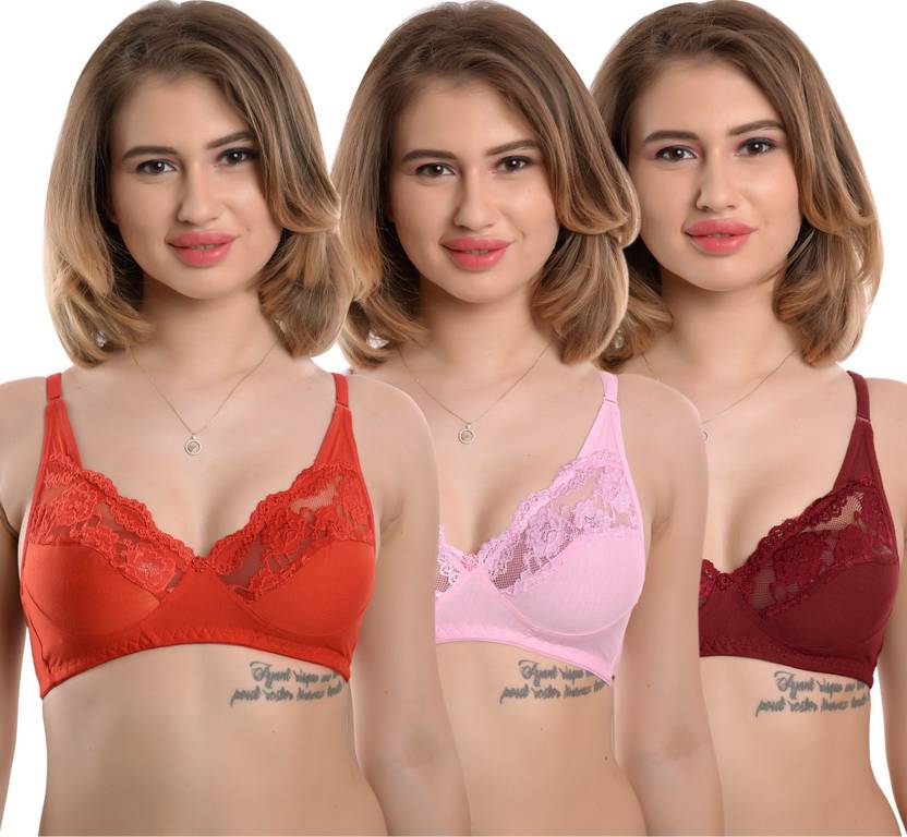 Mery Jane Pack of 3 Women Full Coverage Non Padded Bra (Multicolor)