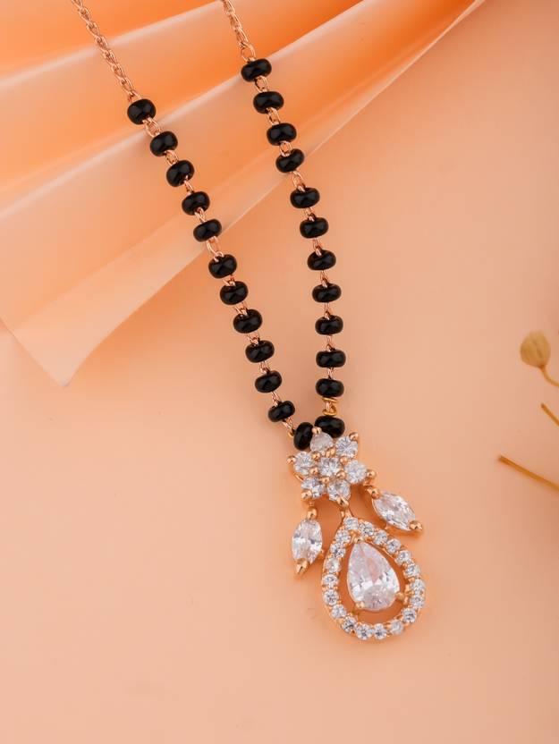 A perfect blend of tradition and modern elegance, this stunning imitation mangalsutra is crafted with a chic rose gold finish and embellished with sparkling diamond-cut stones. The sleek and minimal design makes it ideal for daily wear, while the rose gold plating adds a contemporary touch to the classic symbol of love and commitment. Lightweight, skin-friendly, and durable, this mangalsutra is a graceful accessory that complements both ethnic and western outfits.