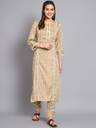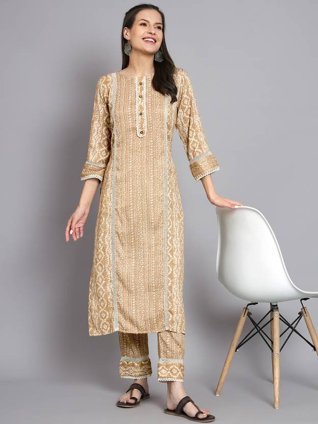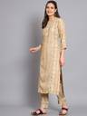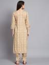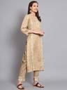 "This kurta's distinctive style and stunning color will draw a lot of admiring attention. It is made from high-quality cotton that is lightweight and soft against your skin. The pants have a side slit at the hem and a somewhat elasticized waistband for a comfortable fit.